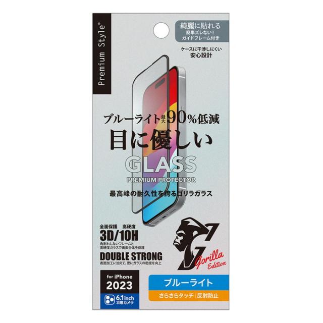 極薄でも強靭なゴリラガラスを採用し、通常ガラスの表面加工に加えて分子レベルでガラスの密度を高めたダブルストロング製法のiPhone 15 Pro用 液晶全面保護ガラスのブルーライト低減/アンチグレアタイプです。