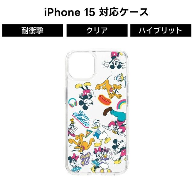 ディズニーキャラクターデザインのiPhone 15用 クリアハイブリッドケースです。