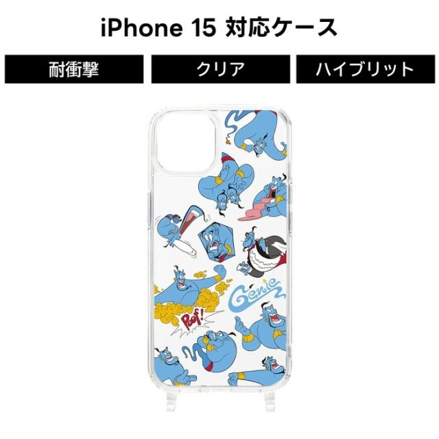 iPhone15 ショルダーストラップホール付クリアハイブリッドケース ディズニー ジーニー iPhoneケース かわいい おしゃれ アラジン ケース カバー TPU スマホケース キャラクター グッズ ソフト ハード 透明 可愛い 人気 耐衝撃
