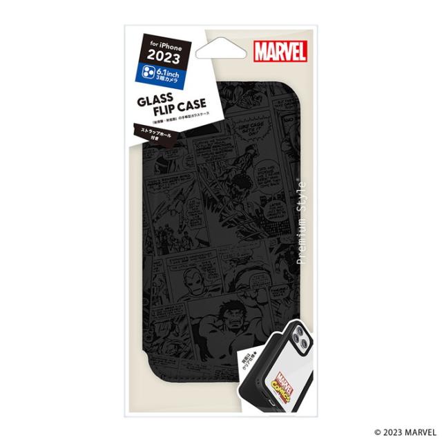 「MARVEL」デザインのオリジナリティと機能性を追求したiPhone 15 Pro用 ガラスフリップケースです。