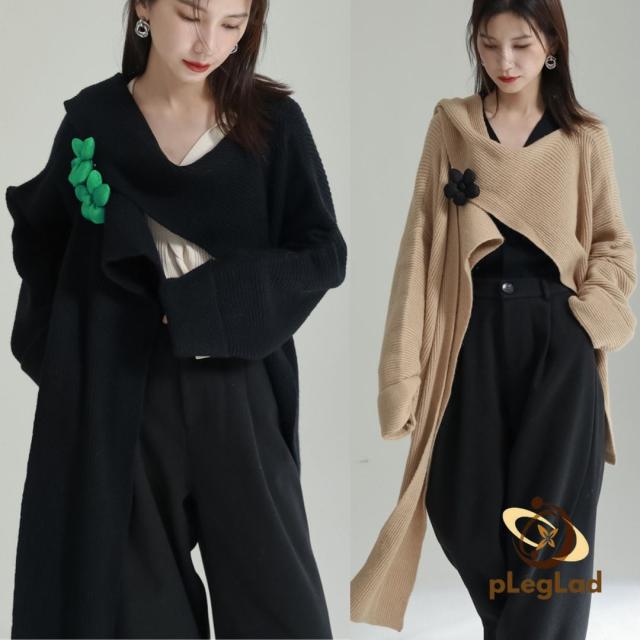 ロング ニット カーディガン レディース スカーフ コート モード系 不規則 ルーズ レトロ セーター アウター ゆったり 羽織り 黒 無地 きれいめ 秋 冬