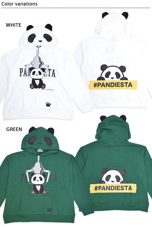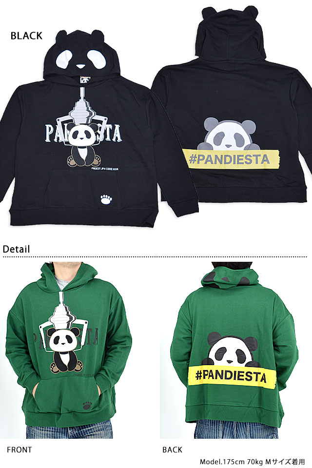 和柄ブランド【錦】の姉妹ブランドとして誕生した、お茶目なパンダをモチーフとした【PANDIESTA JAPAN】より「UFOキャッチャーパンダパーカー(533102)」のご紹介です。 フロントにはパンダが景品のUFOキャッチャーをプリントしました。 ポケットの表面にはフットスタンプをデザイン。 バックにはハッシュタグとパンディエスタがプリントされています。 フードは耳が縫い付けられた、なりきりパンダデザインです。 ボディーには裏毛スウェットを採用しています。 袖口、裾にはリブを配し、野暮ったさを軽減しました。 | |||||||||||||||||||||||||