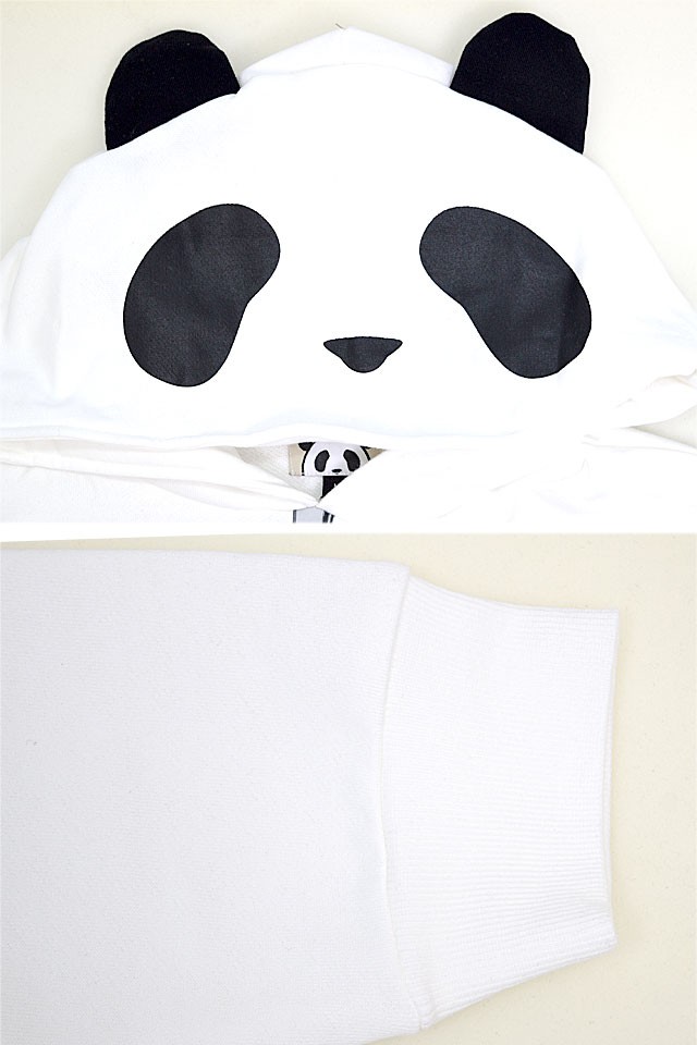 フードは耳が縫い付けられた、なりきりパンダデザインです。