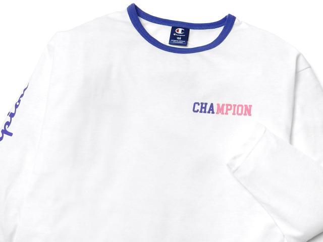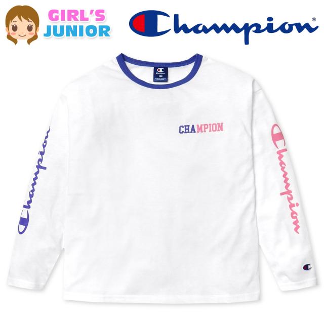【送料無料】女児 ジュニア 長袖 Tシャツ Champion 綿混 ゆったりシルエット ロゴ 刺繍 子供服 女の子 td-0668a-wt【メール便対応】
