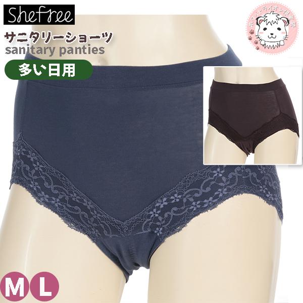 サニタリーショーツ 多い日用 アツギ She free 羽根つき対応 足口レース 生理用ショーツ 87431AS M/L