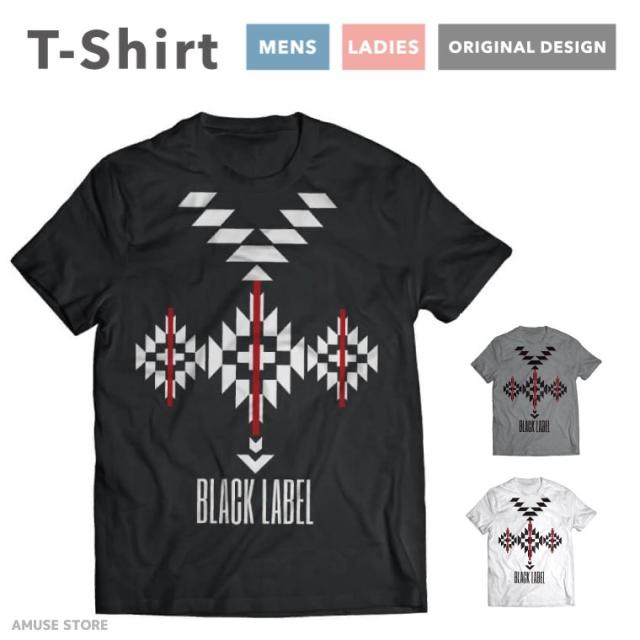 Tシャツ メンズ 半袖 おしゃれ プリント ブラック ホワイト グレー BLACK LABEL ネイティブ