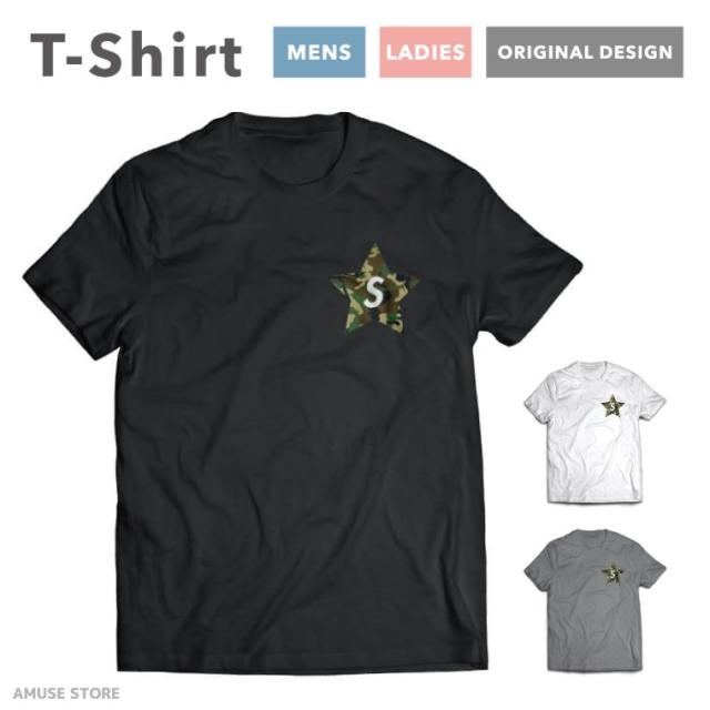 Tシャツ メンズ 半袖 おしゃれ プリント ブラック ホワイト グレー S 迷彩 ワンポイント 星 STAR