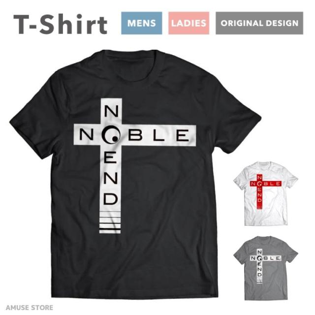 Tシャツ メンズ 半袖 おしゃれ プリント ブラック ホワイト グレー NOBLE NOEND 十字架 モノクロ