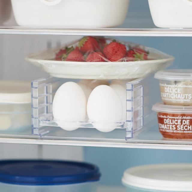 限られたスペースの冷蔵庫の中を無駄なく有効活用できるエッグラックです。冷蔵庫の中をすっきり整理することで買い過ぎや買い忘れを防ぎ、中の食材を無駄にせず食品ロス対策になり節約にもなります。