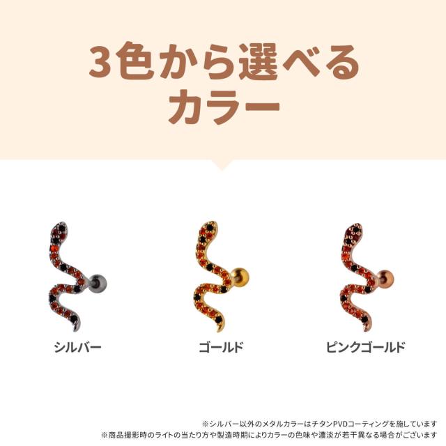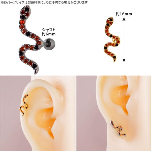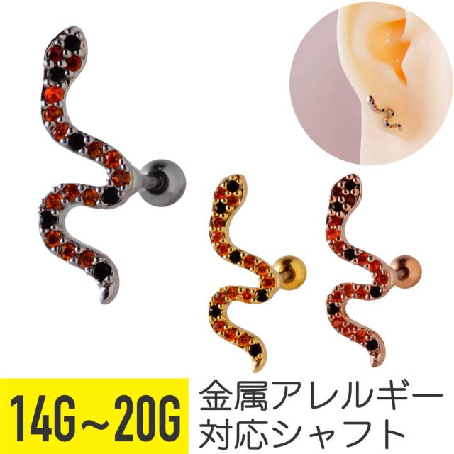 スネーク ヘビ オレンジ ジュエル ストレートバーベル 14G 16G 18G 20G サージカルステンレス ヘリックス 軟骨ピアス ボディピアス