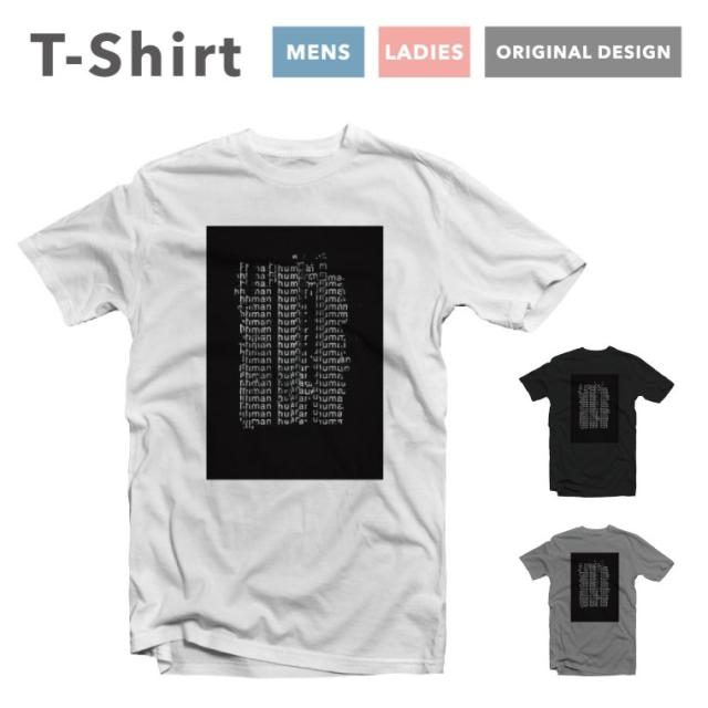 Tシャツ メンズ 半袖 おしゃれ プリント ブラック ホワイト グレー アルファベット AlphabeT human 人間 ホラー Horror 暗号 かわいい