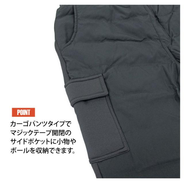 | 特徴 | ダウン80%、フェザー20%の贅沢な混率に 裏地のシャギーフリースで保温性を高めた暖かい 真冬の寒さにも対応した頼れるゴルフパンツです。 カーゴパンツタイプでマジックテープ開閉の サイドポケットに小物やボールを収納できます。 スキニーシルエットでフィット感があり、 後ろ身頃がストレッチ素材で動きやすく快適。 表面のナイロンキルト仕立てがデザイン性も高めてくれています。 ウエストはゴムひも仕様で伸縮性があります。 |