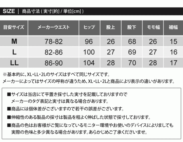 メーカーによってはサイズの呼称が違うため、XL・LL・2Lと商品により表示の違いがあります。