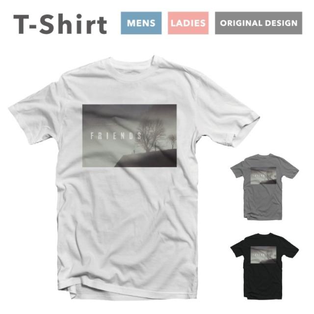 Tシャツ メンズ 半袖 おしゃれ プリント ブラック ホワイト グレー 風景 景色 FRIENDS