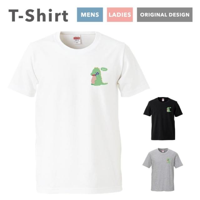 Tシャツ メンズ 半袖 おしゃれ プリント ブラック ホワイト グレー 恐竜 イラスト ダイナソー Hello 韓国 シンプル かわいい