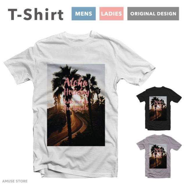 Tシャツ メンズ 半袖 おしゃれ プリント ブラック ホワイト グレー ALOHA Holiday Take me To The beach 海 sea summer