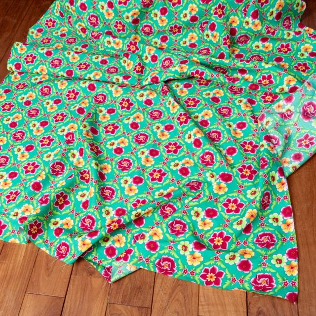 〔1m単位切り売り〕アジアのレトロ花柄ファブリック 生地 東北大花布 ヴィンテージ風 昭和レトロ〔約160cm〕 グリーン / 商用利用可 客家花布 牡丹四季花 ノスタルジック ヴィンテージファブリック風 インド エスニック