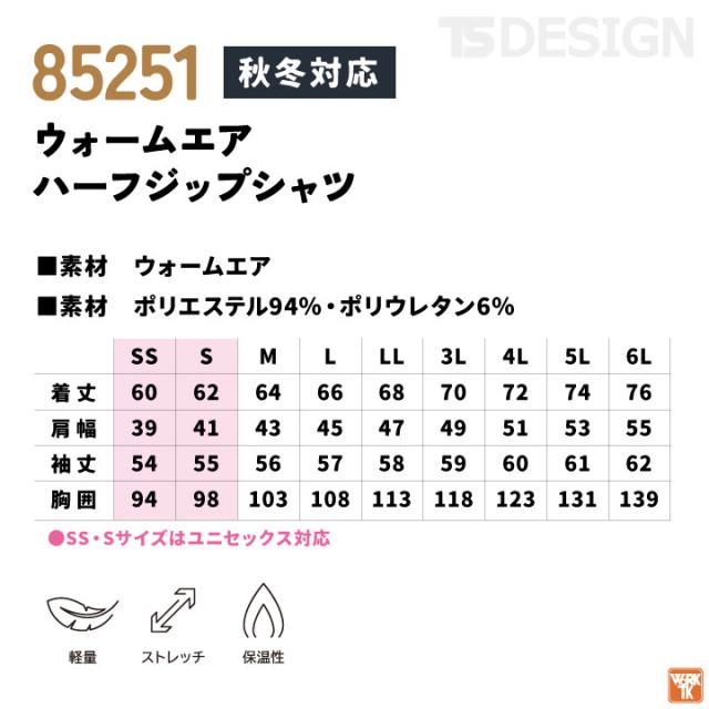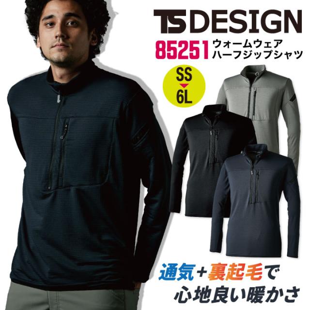 85251 TS DESIGN TOWA ウォームエアハーフジップシャツ 裏起毛 暖かい 秋冬 おすすめ 作業服 ユニフォーム