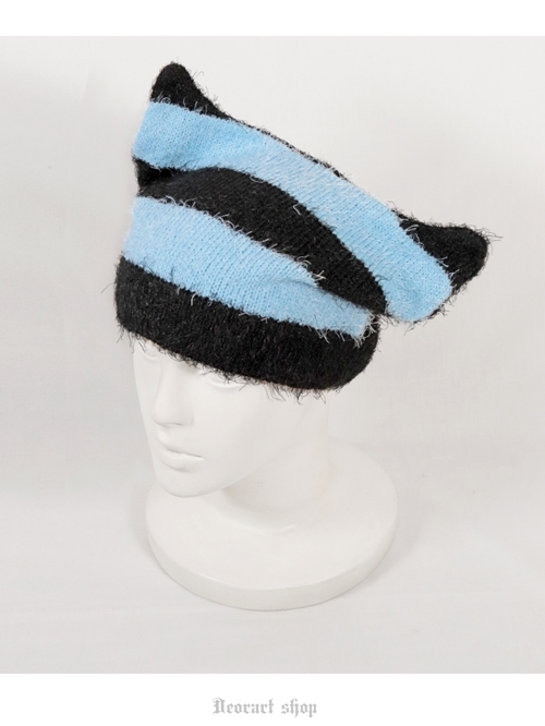 [APPAREL]/ディオラート/シャギーニット・ ネコミミ ニット帽 ブラック x ライトブルー (F) ゴスロリ・パンク/Deorart