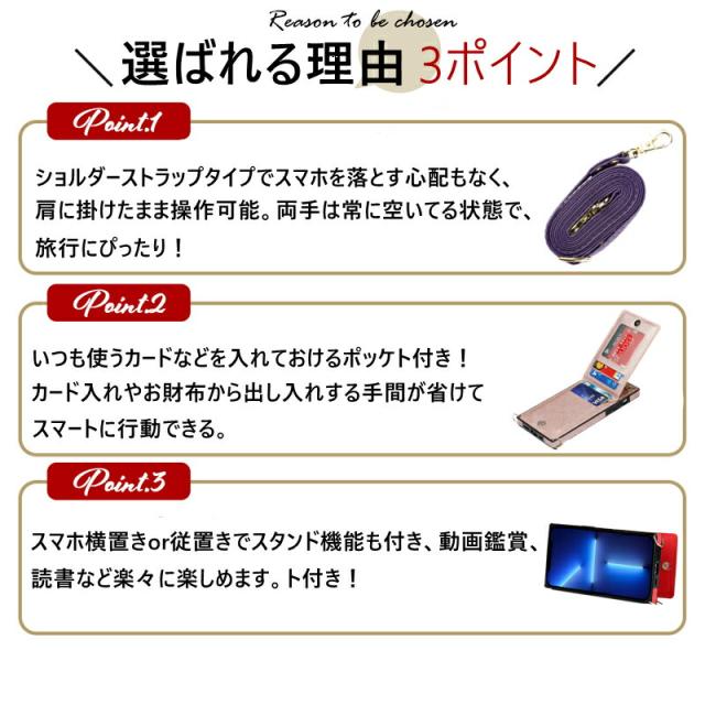 肩掛けタイプでスマホを落とす心配もなく、ハンズフリーでスマートに持ち運べるスマホケースです。