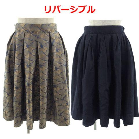 【中古】Sense of Place by Urban Research スカート リバーシブル ミディ丈 ウエストゴム カモフラ柄 茶系 青 紺 F