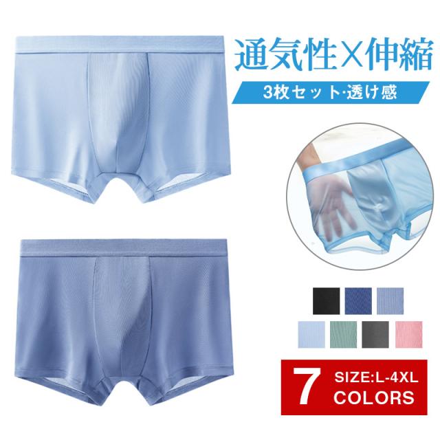 接触冷感 ボクサーブリーフ メンズ ボクサーパンツ 薄手 下着 メンズ アンダーウェア シームレス 透け感 3枚セット プレゼント