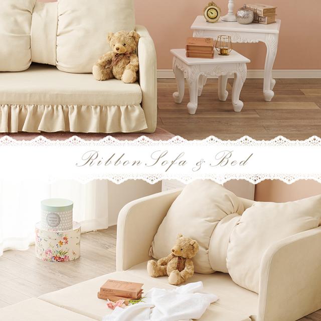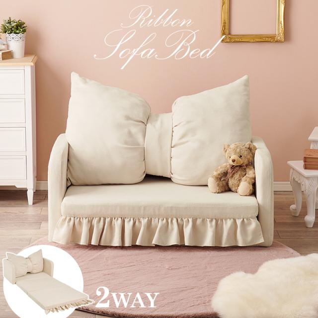 可愛く寛ぎ可愛く眠る コンパクト ソファーベッド 【送料無料】 おしゃれ 姫系 インテリア かわいい 折りたたみ リボン 女の子 一人暮らし 二人掛け 小さいソファー