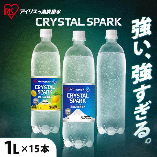 炭酸水 1000ml 15本 選べるラベルレス 強炭酸水 無糖 プレーン レモン フレーバー 炭酸 天然水 スパークリング ソーダ 割り材 まとめ買い 1リットル 1l アイリスオーヤマ アイリスフーズ クリスタルスパーク CRYSTALSPARK 富士山の強炭酸水 *