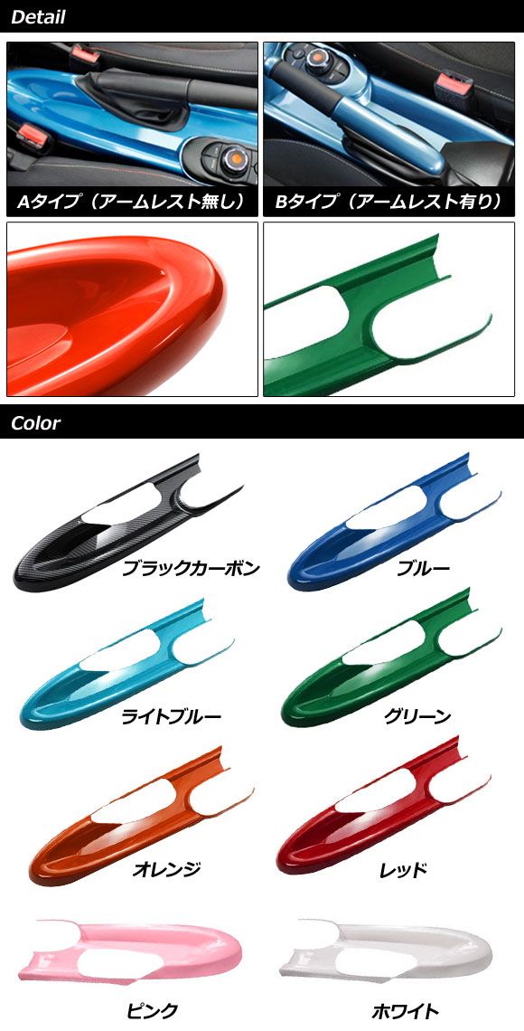 サイドブレーキパネルカバー MINI(BMW) F55/F56/F57 アームレスト無し車用 2014年〜 ライトブルー ABS製 Aタイプ AP-IT3166-A-LBL