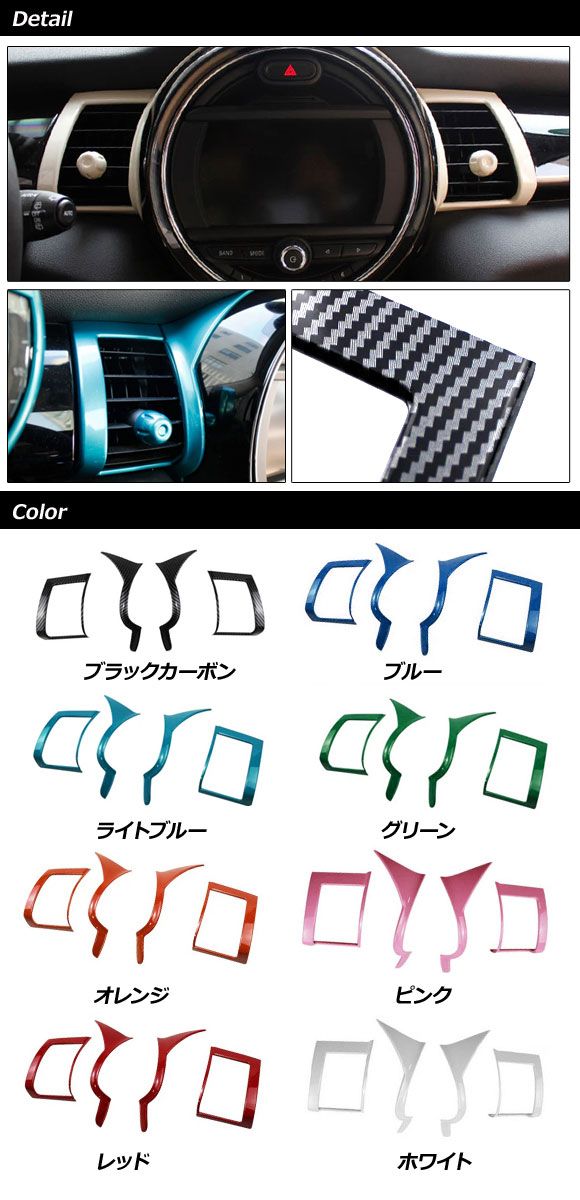 エアコンダクトカバー センター用 MINI(BMW) F55/F56/F57 前期/中期 2014年〜2021年 ブルー ABS製 入数:1セット(4個) AP-IT3172-BL