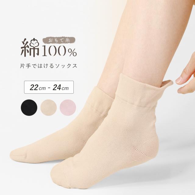 ソックス 片手で履ける 靴下 日本製 綿 コットン クルー丈 介護 介護用靴下 シニア 婦人 *2-2t *y3-6t
