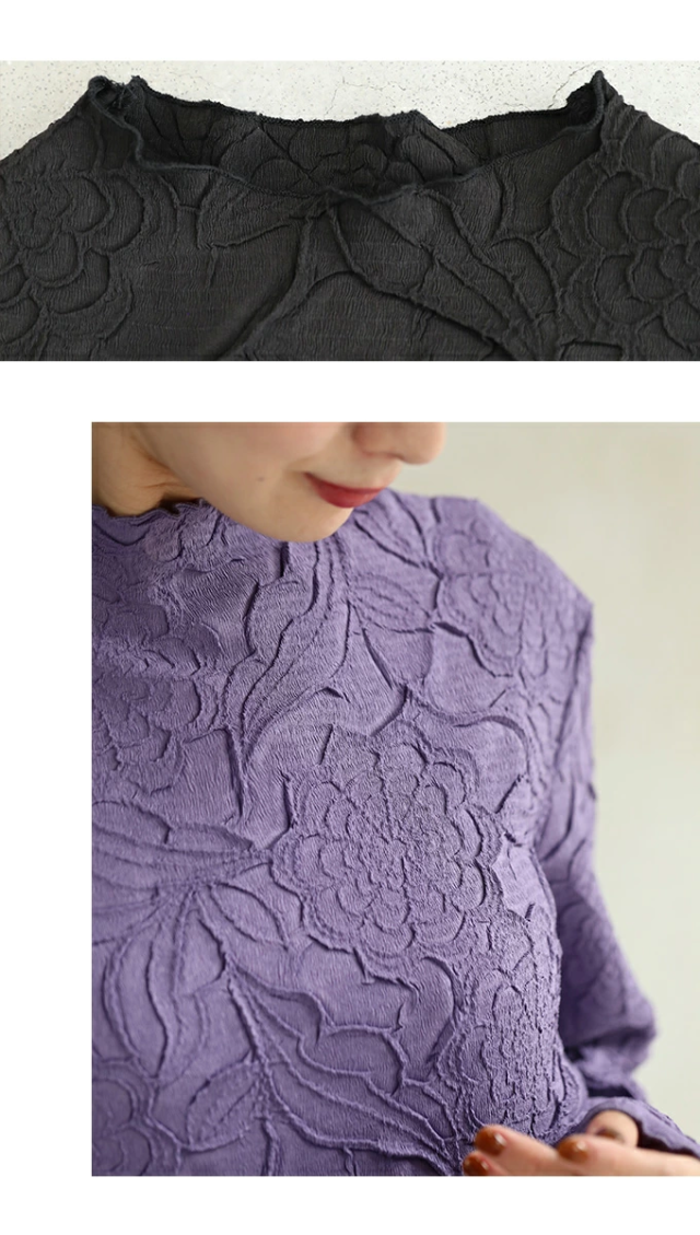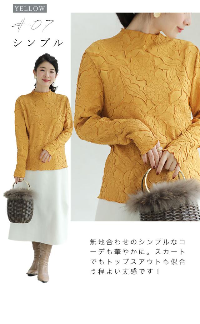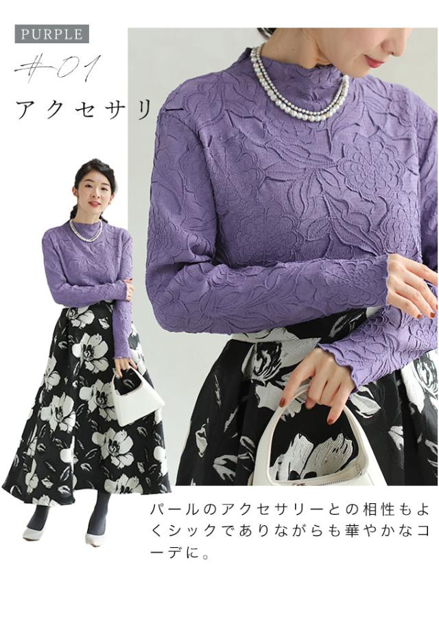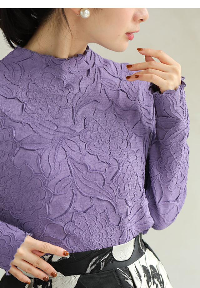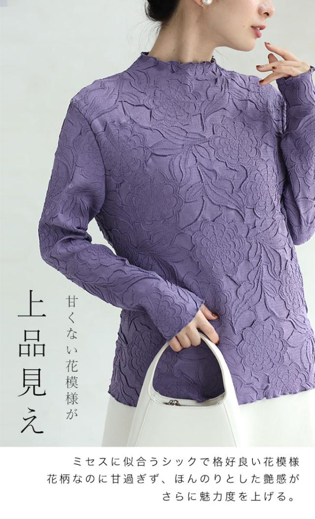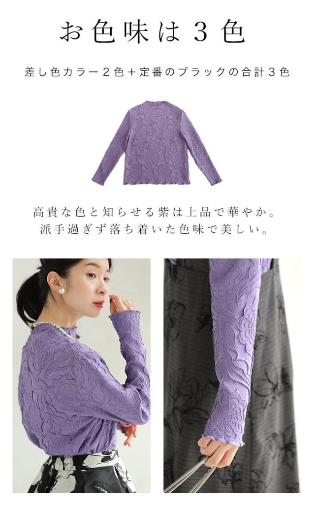 w60287ps 彫刻花 トップス 超伸縮 新作 新着 再入荷 CAWAII FRENCHPAVE フレンチパヴェ エレガント ベーシック カジュアル 可愛い かわいい カワイイ おしゃれ オシャレ お洒落 個性 個性的 定番 ベーシック 大人かわいい 大人可愛い 上品 女性らしい デザイン スタンダード ナチュラル きれいめ キレイめ シンプル フェミニン レディース レディースファッション 大人 ママ ミセス 30代 40代 50代 60代 トップス 長袖 彫刻花 総柄 ストレッチ 重ね着 伸びる 伸縮性 のびのび 長そで ロング袖 柄 花 フラワー柄 ブラック パープル イエロー 黒 紫 黄色 S M L 2L LL フリーサイズ フリー 小さめ 小さめサイズ 小さい 小さいサイズ 低身長 痩せ ほっそり 小柄 細身 標準サイズ 大きめシルエット 大きい 大きめ ビッグシルエット ぽっちゃり F サイズ自由 日常着 普段着 日常使い 春 秋 冬 秋服 秋物 春服 春