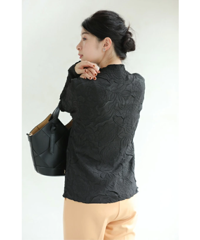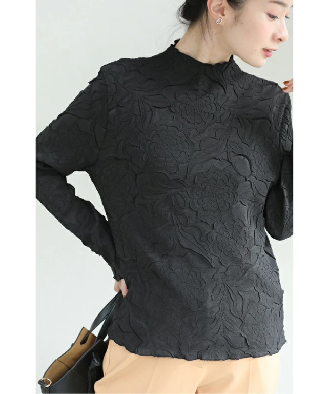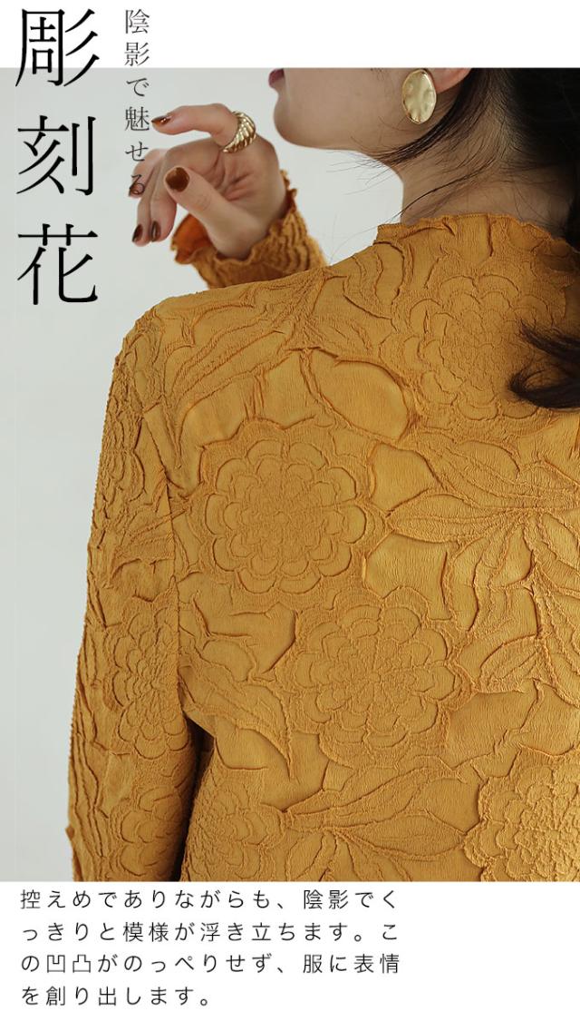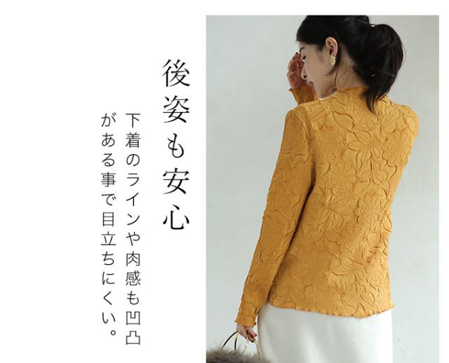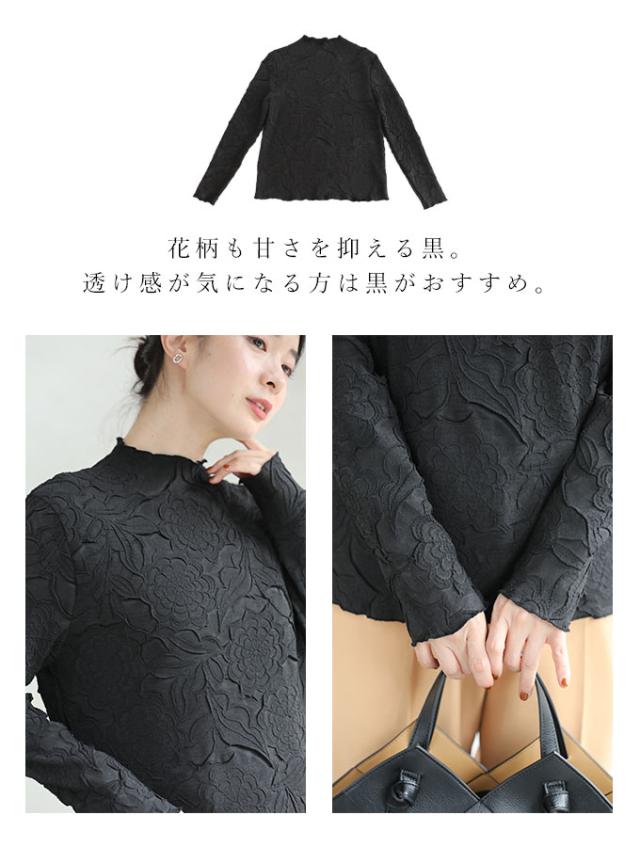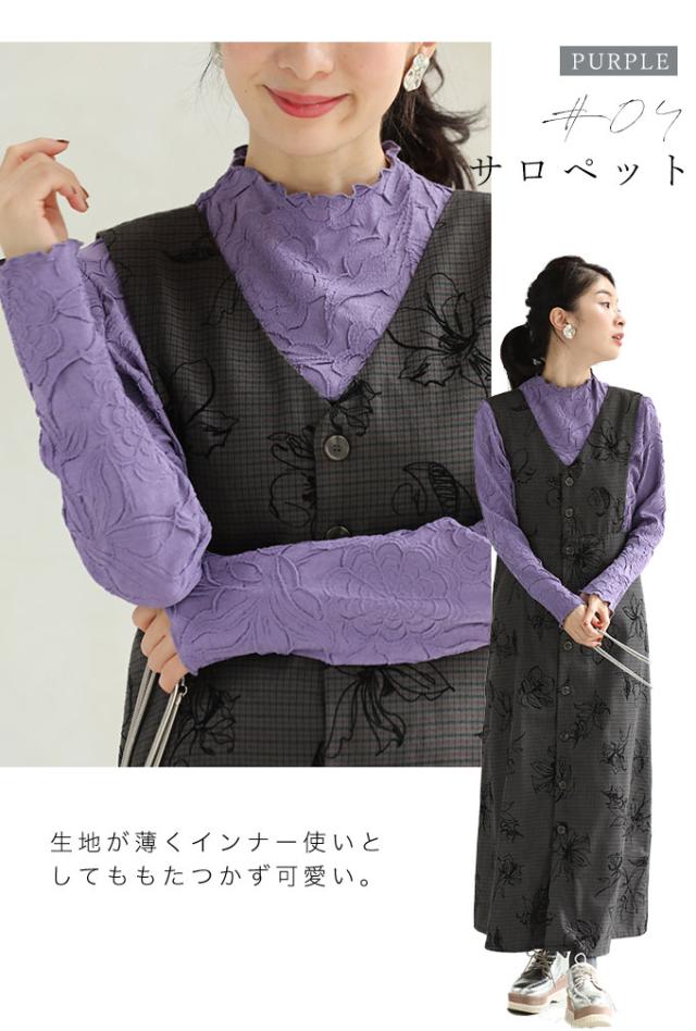 w60287ps 彫刻花 トップス 超伸縮 新作 新着 再入荷 CAWAII FRENCHPAVE フレンチパヴェ エレガント ベーシック カジュアル 可愛い かわいい カワイイ おしゃれ オシャレ お洒落 個性 個性的 定番 ベーシック 大人かわいい 大人可愛い 上品 女性らしい デザイン スタンダード ナチュラル きれいめ キレイめ シンプル フェミニン レディース レディースファッション 大人 ママ ミセス 30代 40代 50代 60代 トップス 長袖 彫刻花 総柄 ストレッチ 重ね着 伸びる 伸縮性 のびのび 長そで ロング袖 柄 花 フラワー柄 ブラック パープル イエロー 黒 紫 黄色 S M L 2L LL フリーサイズ フリー 小さめ 小さめサイズ 小さい 小さいサイズ 低身長 痩せ ほっそり 小柄 細身 標準サイズ 大きめシルエット 大きい 大きめ ビッグシルエット ぽっちゃり F サイズ自由 日常着 普段着 日常使い 春 秋 冬 秋服 秋物 春服 春