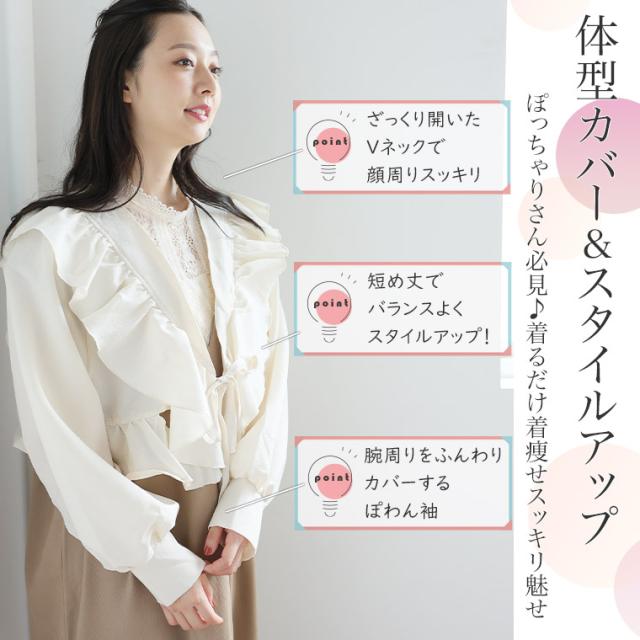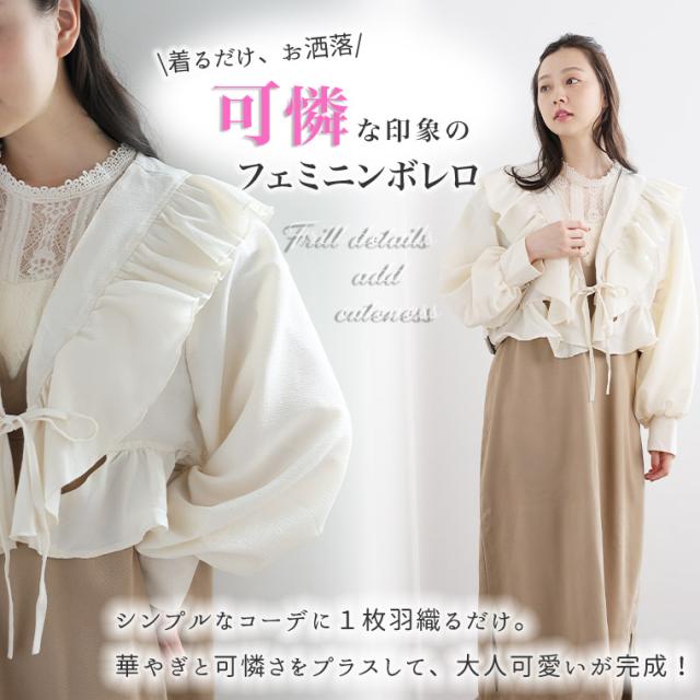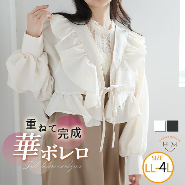 新作 大きいサイズ レディース ブラウス | フクレ織り フリルボレロ 長袖 ブラウス [860837] LL 3L 4L