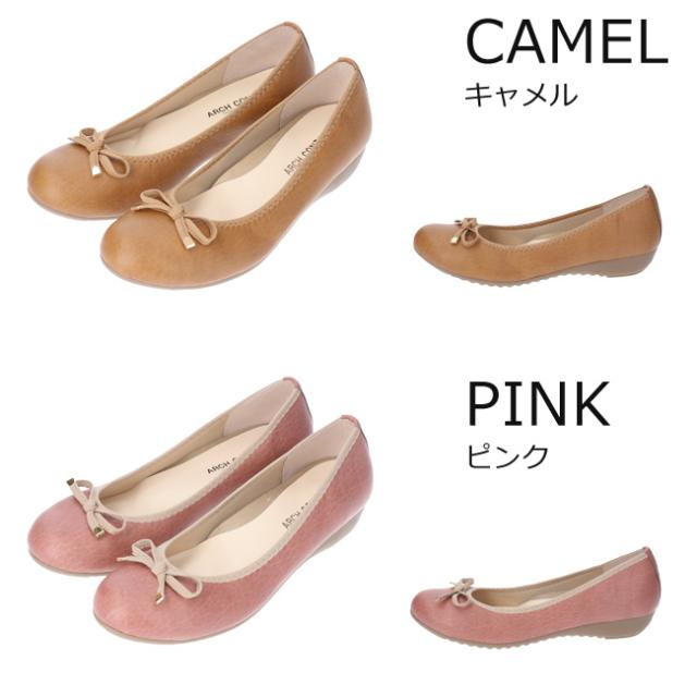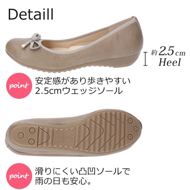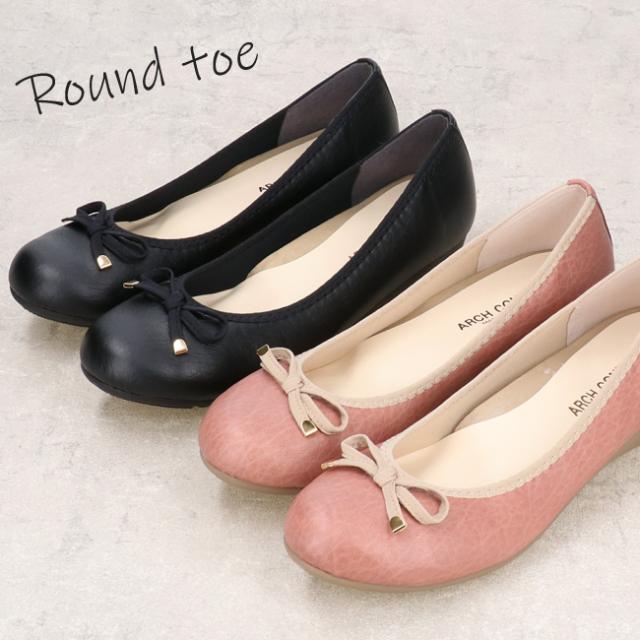 アーチコンタクト パンプス 疲れない 歩きやすい 痛くない ローヒール ラウンドトゥ リボン 低反発 柔らかい45076日本製 靴
