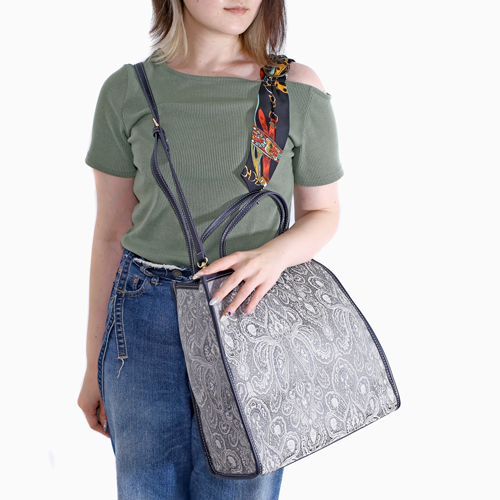 バッグ スクエアトート ジャガード生地 ショルダーバッグ