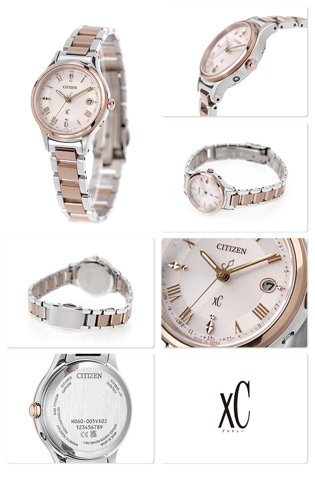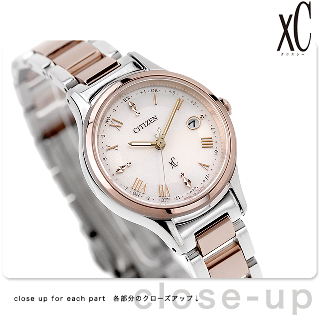 【リップケース付】 シチズン クロスシー ヒカリコレクション 光発電エコドライブ電波 腕時計 ブランド レディース チタン ソーラー電波 CITIZEN xC ES9496-64W アナログ シルバーベージュ ピンクゴールド 日本製