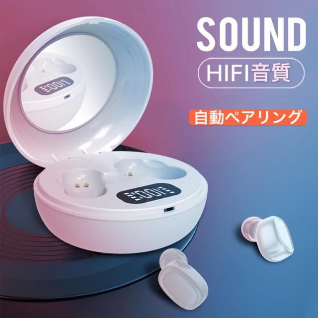 化粧鏡 ワイヤレスイヤホン Bluetooth 5.0 両耳片耳 高音質 耳掛け式 防水 ブルートゥース イヤホン マイク付き 軽量 Siri対応 Bluetooth