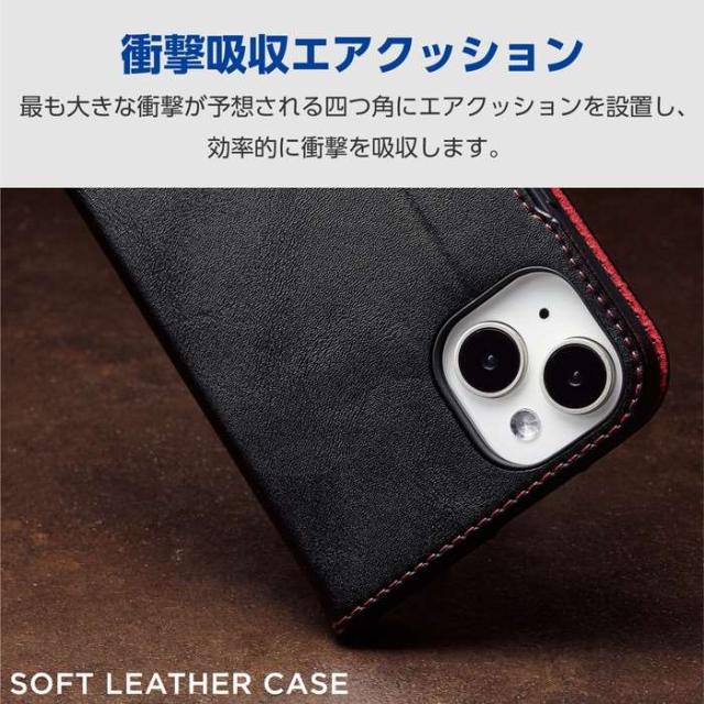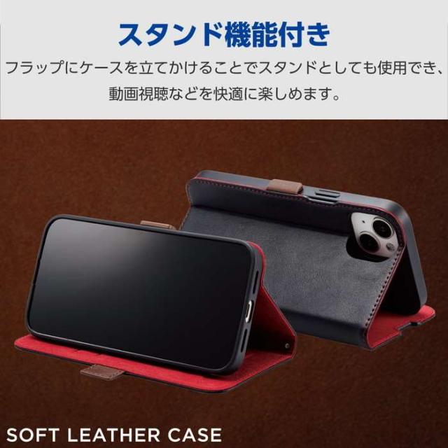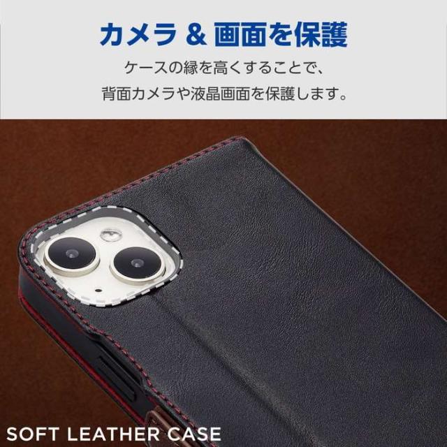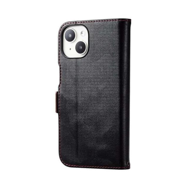 代引不可 iPhone 15 用 ケース レザー カバー 手帳型 マグネット フラップ 衝撃吸収 薄型 ストラップホール付 スタンド機能付 ステッチ カードケース機能付 ブラック エレコム PM-A23APLFYBK