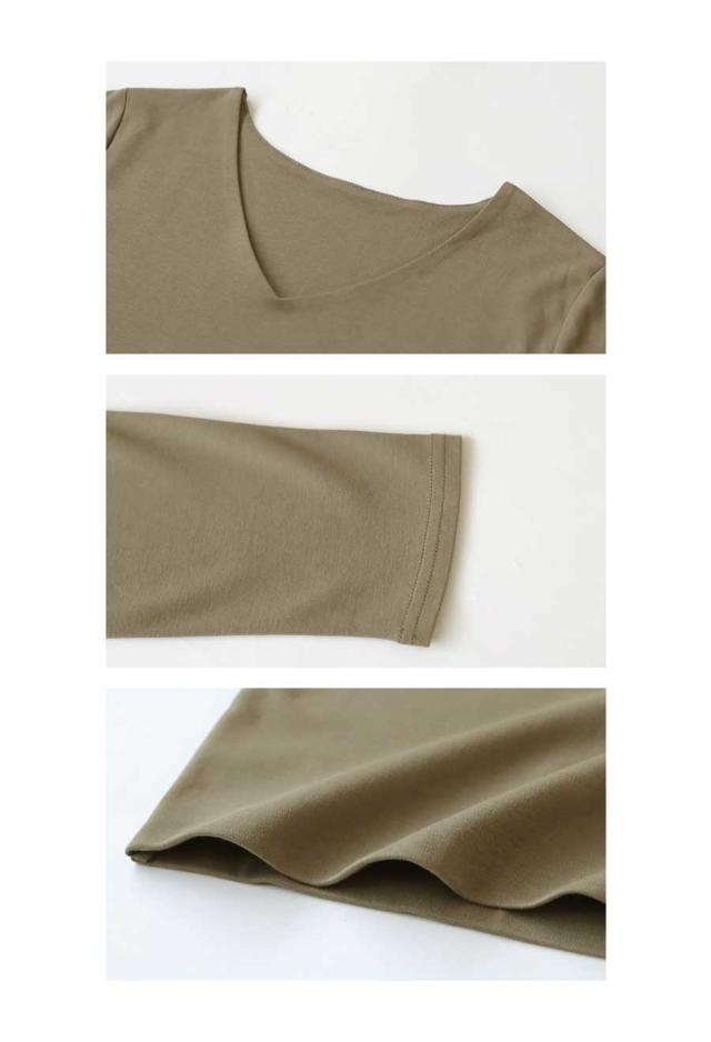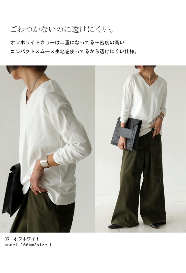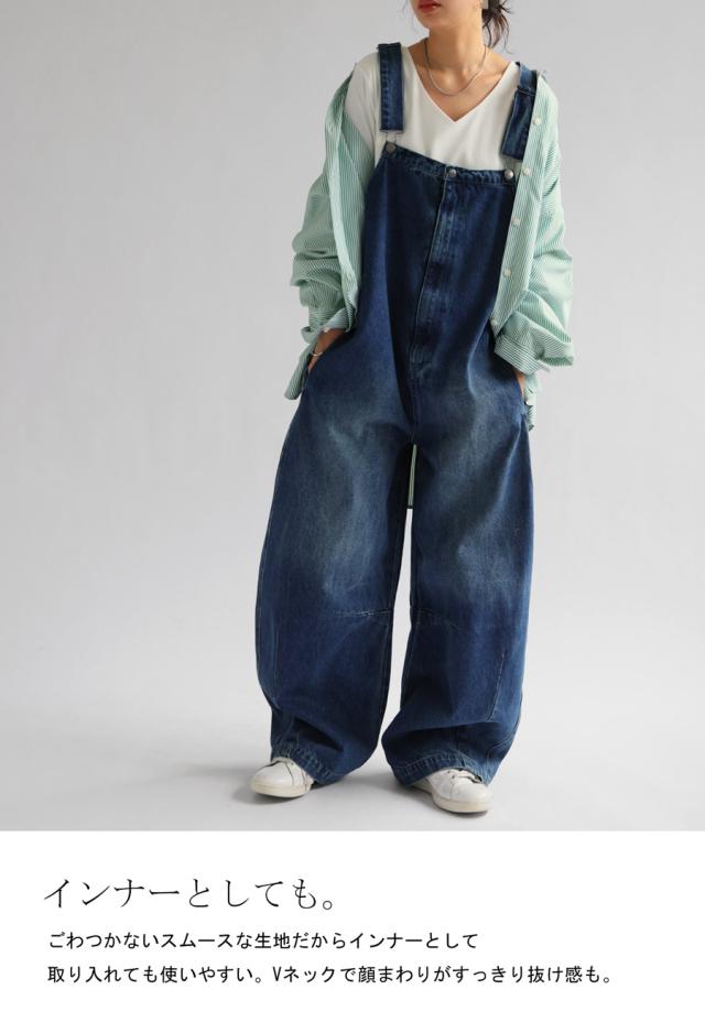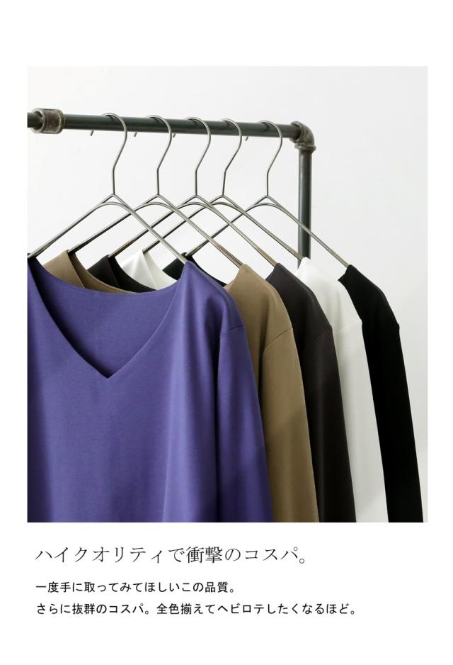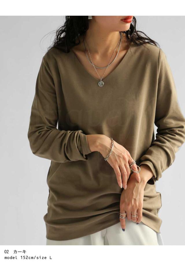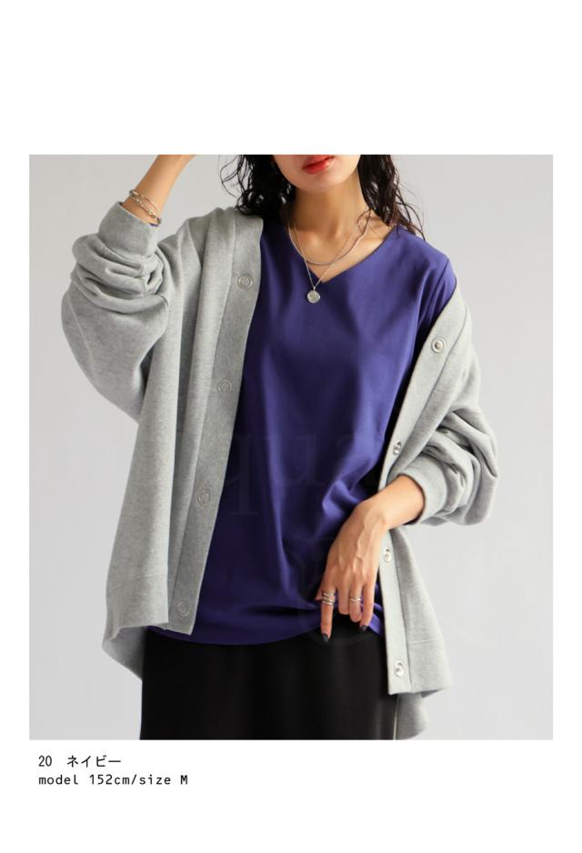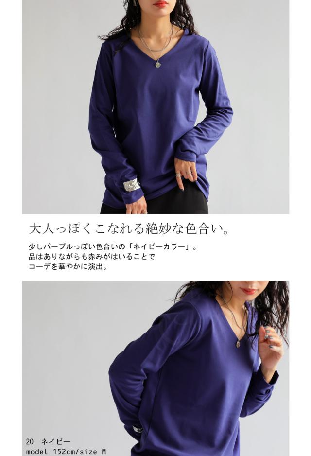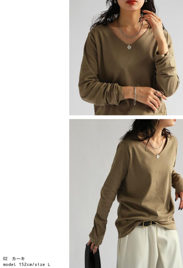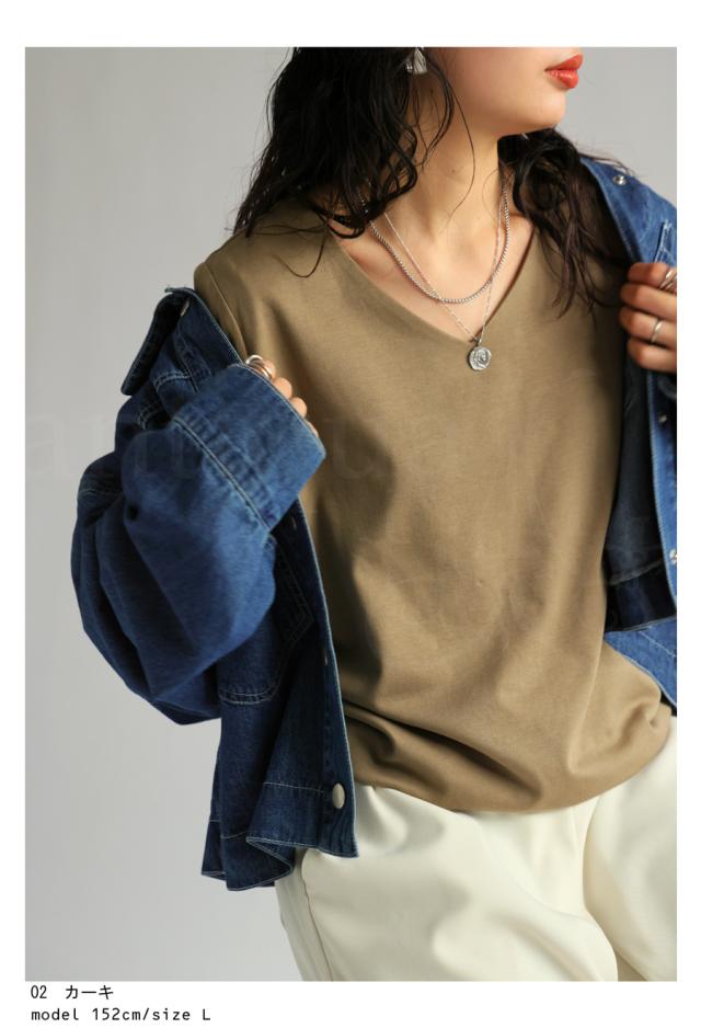 na-00447 シンプル Vネック コンパクトスムース カットソー Tシャツ プルオーバー 透けない インナー 重ね着 綿 コットン コットンロンt オーバーサイズ 大きめ 大きいサイズ
