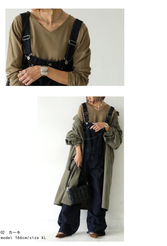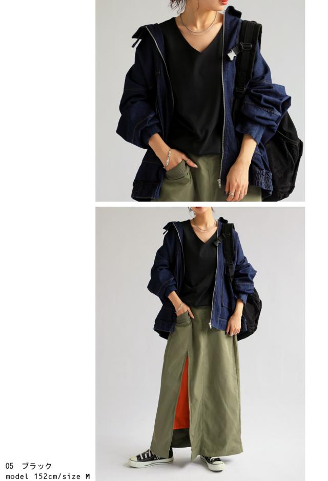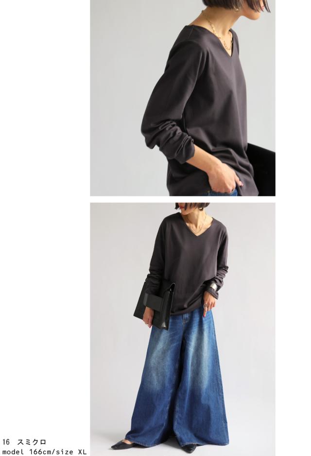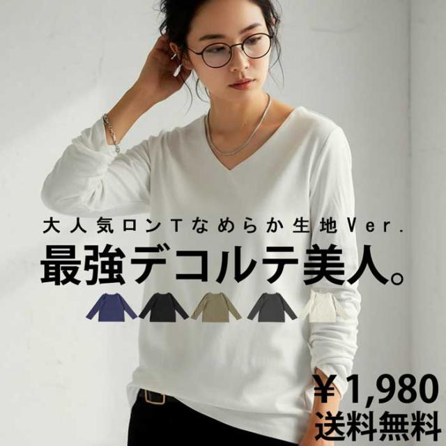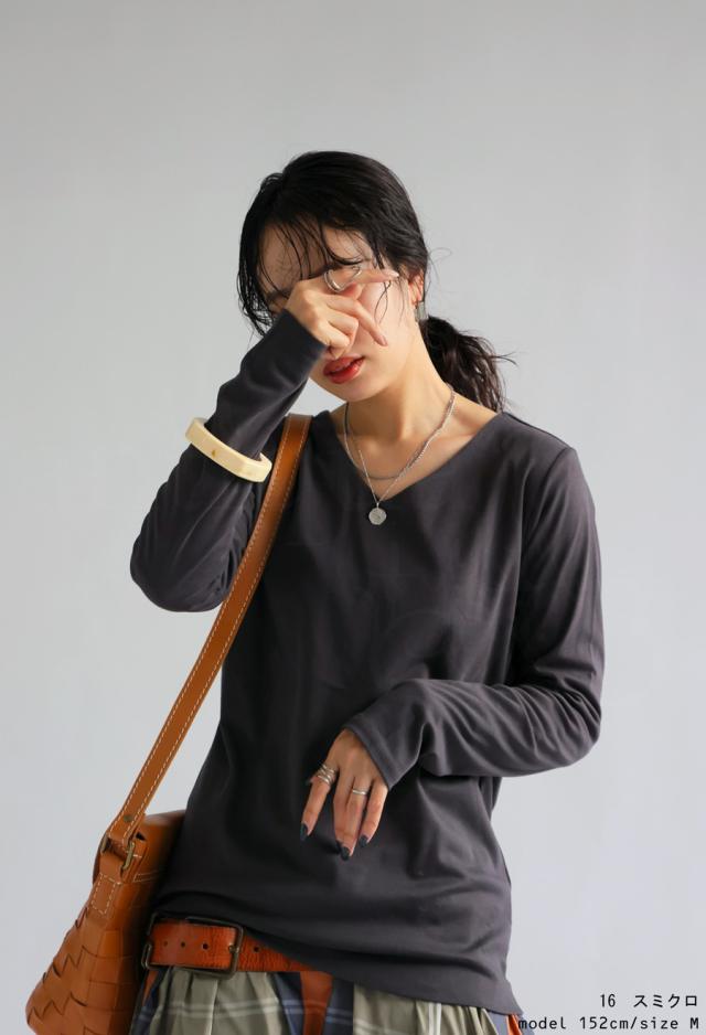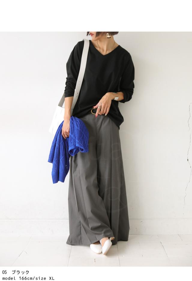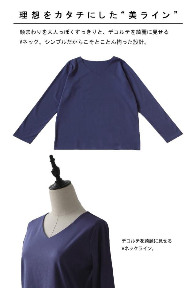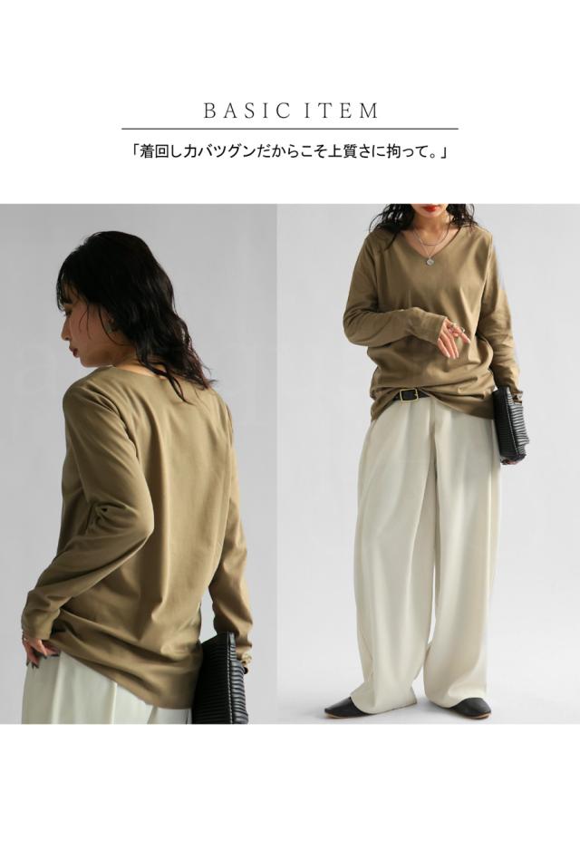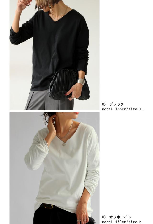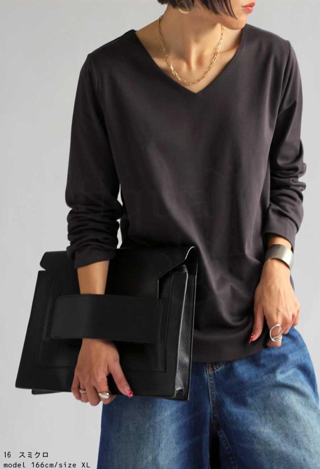 na-00447 シンプル Vネック コンパクトスムース カットソー Tシャツ プルオーバー 透けない インナー 重ね着 綿 コットン コットンロンt オーバーサイズ 大きめ 大きいサイズ