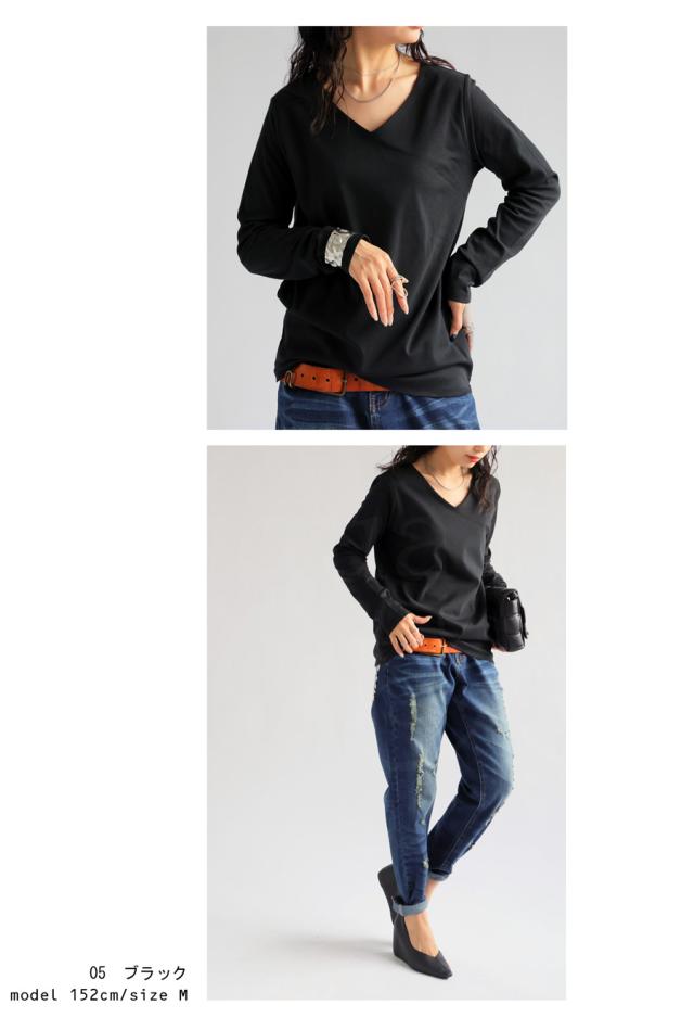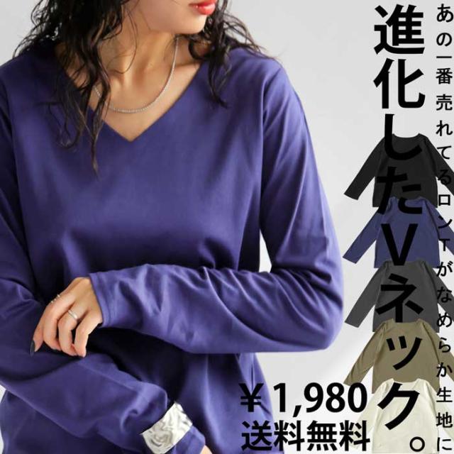 再入荷予定有!特別送料無料 VネックロンT レディース トップス 長袖 綿100 無地・(100)メール便可