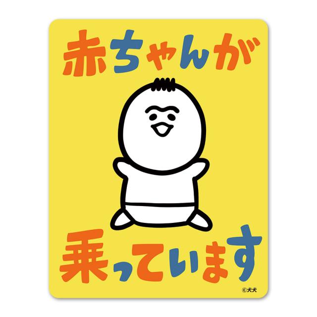 犬犬 育児漫画 赤ちゃん 全身 赤ちゃんが乗っています 車マグネットステッカー ゆうパケット対応210円〜