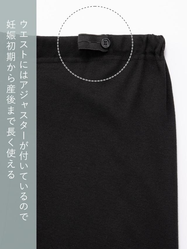 セットのパンツはロングシーズン着まわせる微起毛素材。ウエストにはアジャスターが付いているので妊娠初期から産後まで長く使えます。
