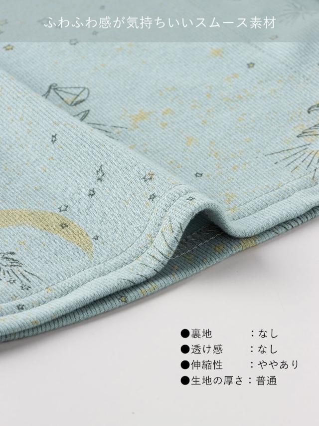 子どもっぽくなりすぎない程よい甘さが魅力の星座柄。前開きで授乳しやすく、着まわしやすいスムースのパジャマです。