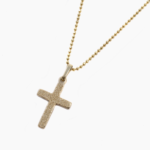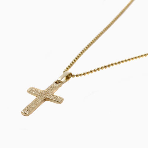 高級素材・18金を贅沢に使用した、片面にスターダスト加工(星のしずく)を施したクロスペンダント。