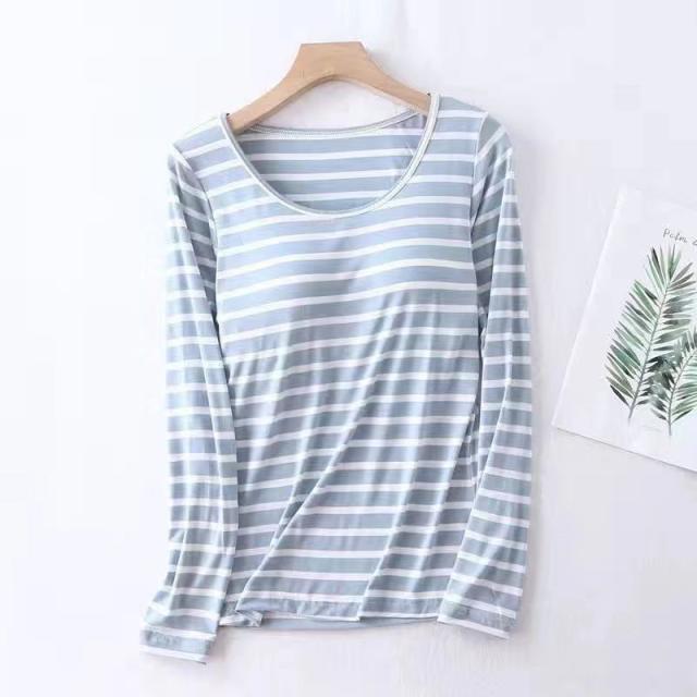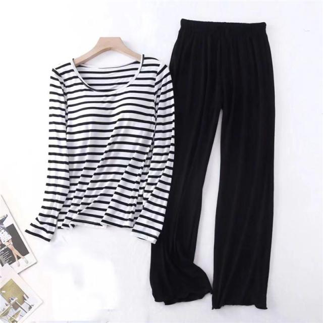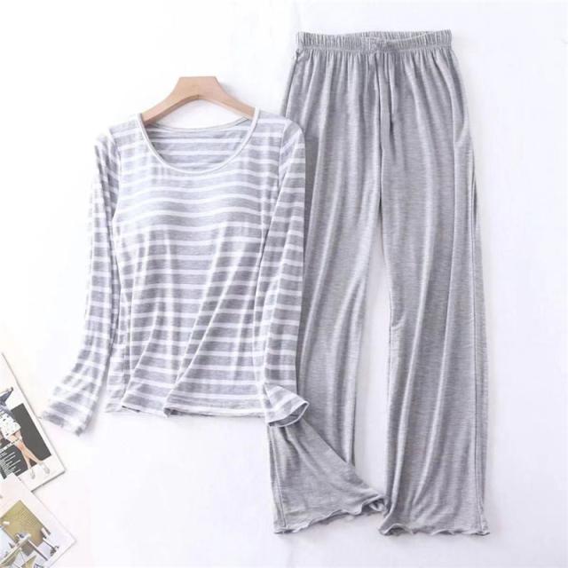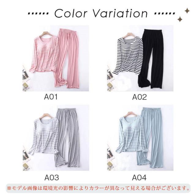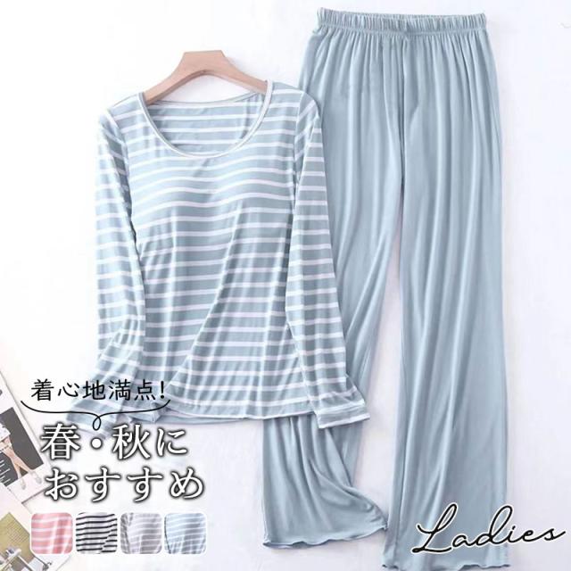 パジャマ レディース 長袖 ルームウェア カップ付き ボーダー ロングパンツ 春 夏 初秋 寝間着 ナイトウエア 着心地 部屋着