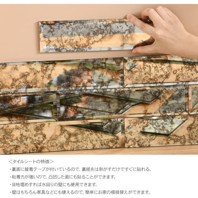 ガラスタイル シート アンティークミラー 1箱(4枚) BV 鏡面 鏡 タイルシール 壁 キッチンタイル カフェ 店舗 インテリア キッチン リビング 寝室 玄関 テーブル 洗面台 トイレ ガラス DIY 室内 北欧 インテリア