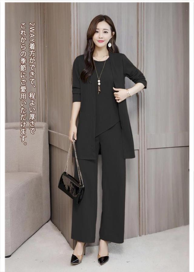 セットアップ パンツスーツ レディース 3点セット パンツドレス フォーマル ブラウス タンクトップ ガウチョパンツ ワイドパンツ ロング パンツ 送料無料 長袖 大きいサイズ オフィス OL 通勤 着痩せ 春 夏 秋 冬 結婚式 入学式 卒業式 2点セット ママ