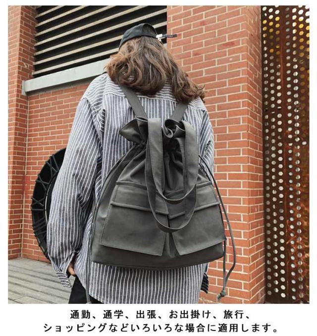 | 実用性とデザイン性を兼ねそろえた2WAYリュックサック。 リュックとして背負うだけでなく、トートバッグとしても。 スタイルや好みに合わて持ち方を変えられます。 入り口が大きく開くため、中の荷物の出し入れがスムーズ。 紐を絞れば巾着の様にシルエットが変えられるデザイン性の高さもポイント。 大容量の収納とシンプルな作りなので、カジュアルすぎない大人のバッグとしてご使用いただけます。 通勤、通学、出張、お出掛け、旅行、ショッピングなどいろいろな場合に適用します。 | |